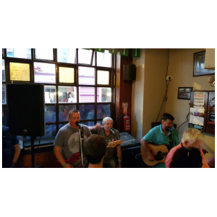 Feierabendrunde mit Musik im Pub. Das in einem Pub ein bis fünf