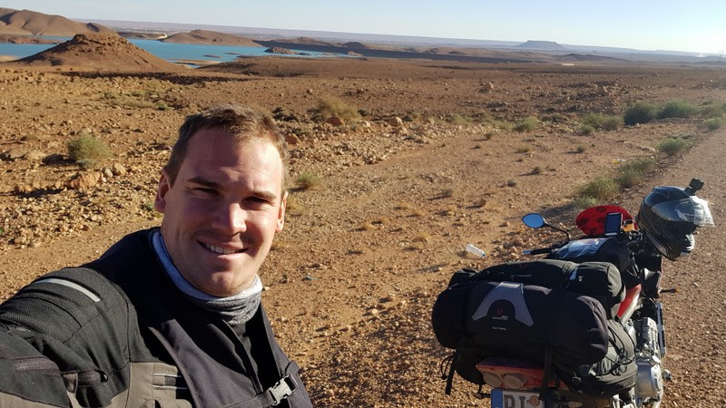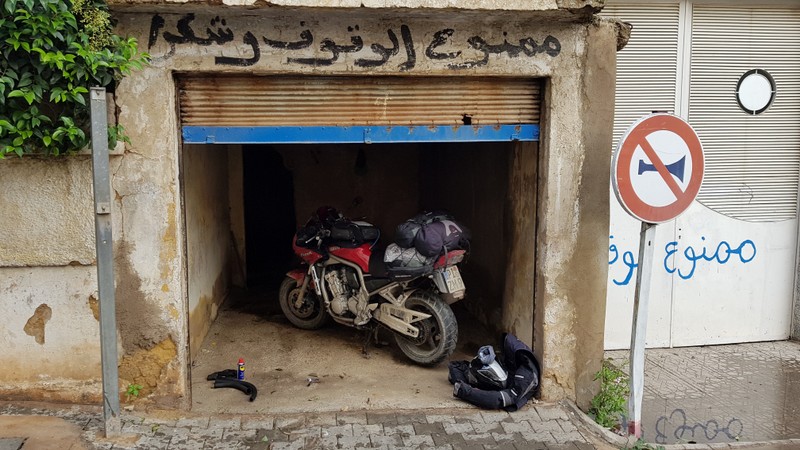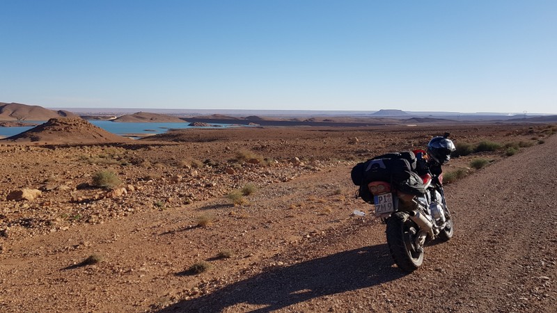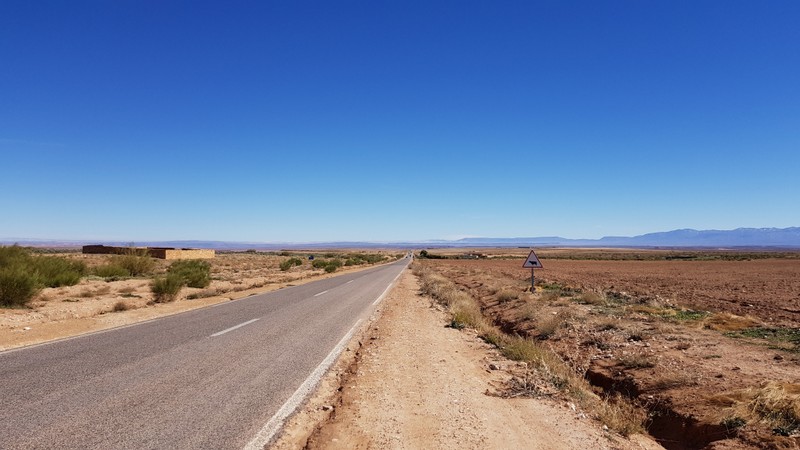 Meinen Plan über das Atlasgebirge in die Wüste zu fahren, besiegelte ich am Vorabend in dem ich mir für meine Fahrt eine passable Route und drei gut gelegene Unterkünfte raussuchte. Mit dem Wissen, dass ich bis zu meinem nächsten Ziel etwa 470km vor mir hatte bin ich mal etwas früher gestartet und genoss die relativ leeren Straßen in „Fès“. Doch meine innere Ruhe wurde kurz vor der Stadtgrenze gestört als ich an einer Bank anhalten wollte um Geld zu holen. Ich schaute wieder nach unten und sah wie der Kühlschlauch schon wieder gerissen war und setzte an zur zweiten Reparaturrunde. Nach kurzer Rücksprache mit Hendrik „Schrauber des Vertrauens“ stand fest, dass alles soweit in Ordnung ist und ich „nur“ einen neuen Kühlschlauch brauchte, da dieser durch die Schmiermittel zu weich geworden ist.