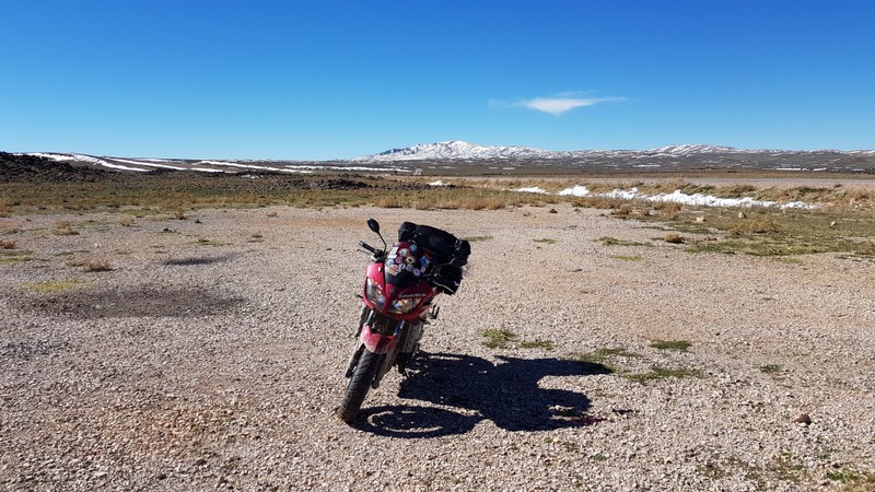 Also fing ich an mein Gepäck abzusatteln und mein Werkzeug raus zu holen, als mir ein einheimischer mit Händen und Füßen seine Garage zum Basteln zur Verfügung stellte. Er stellte mir nicht nur sein Eigentum zur Verfügung, er holte sogar noch einen Freund dazu mit dem ich mich auf die Suche nach einem neuen Schlauch machte. Während ich nur mit meinem Handy und kleinem Portemonnaie unterwegs war passte er auf mein Motorrad und alle meine Sachen inklusive Fahrzeugschlüssel und allen meinen Dokumenten auf. Für diese Gastfreundschaft und Ehrlichkeit wollte ich ihm zumindest etwas Geld als Dankeschön geben, welches er nur mit Widerwillen entgegen nahm. Bevor wir uns nach einer Stunde verabschiedeten machten wir noch ein paar Fotos von ihm auf Ohnezahn, damit er auch seinen Freunden von seinem Erlebnis berichten konnte.