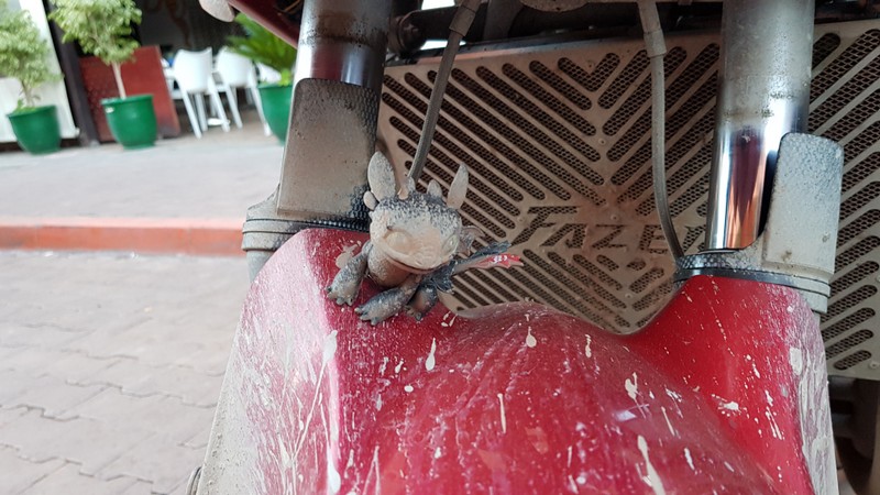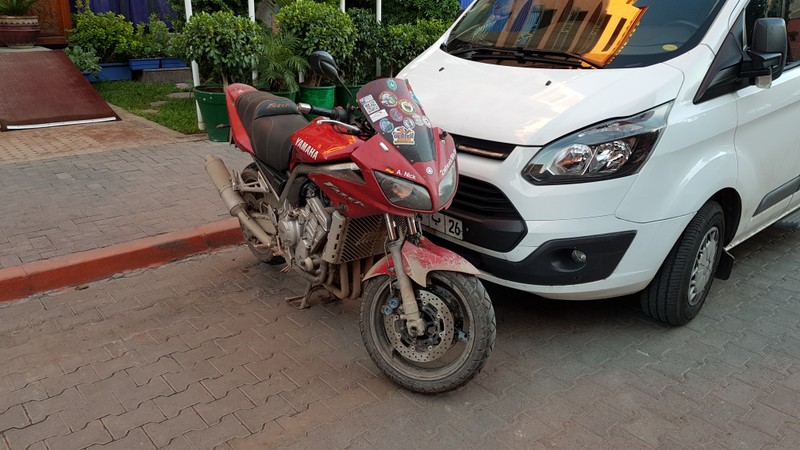 Bevor es am nächsten Morgen weiter Richtung Norden gehen sollte, schaute ich am Abend noch einmal nach meinem Motorrad, welches unter den wachsamen Augen des „Parkplatzwächters“ eng zu geparkt vorm Hotel ruhte. Ein wirklich toller Service.