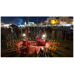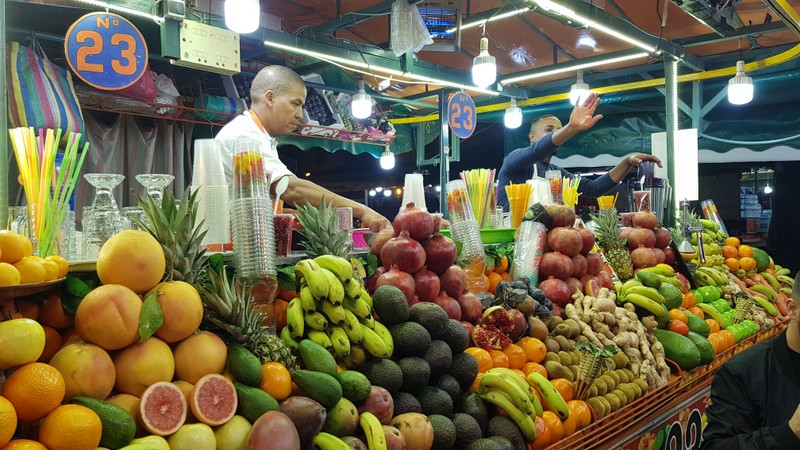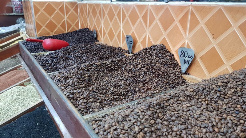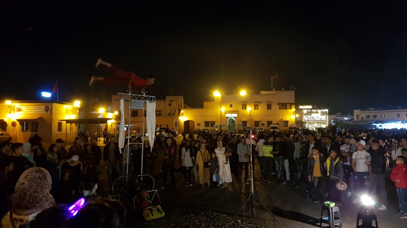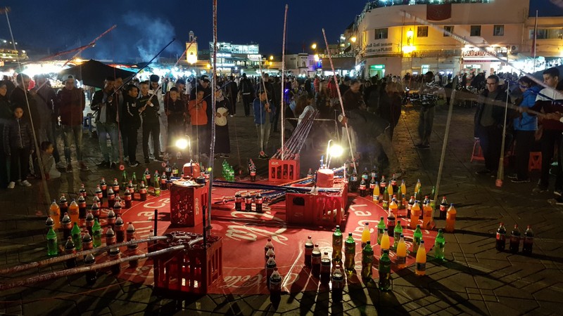 Angekommen auf dem Marktplatz wurde mir schnell klar, dass dies nicht nur ein Ort ist um die Touris anzulocken. Die Einheimischen verbrachten ihren damit, den Klängen diverser Musiker zu lauschen, sich von einem Schlangenbeschwörer begeistern zu lassen, den jungen Artisten bei ihrer Show zuzusehen oder einfach nur auf dem Markt ein wenig zu bummeln. Überall bildeten sich kleine Menschentrauben um die verschiedensten Akteure und so entdeckte ich Cola-Angeln, das marokkanische Enten-Angeln. Einfach genial und mit einfachen Mitteln aufgebaut. Ein paar Schritte weiter begannen auch die ersten Passagen mit Händlern aller Art und auch den Restaurantbetreibern, welche sich fast einen Wettkampf daraus gemacht hatten die Gäste für sich zu gewinnen. Es hat einfach nur Spaß gemacht das bunte Treiben mit einem frisch gepressten Orangensaft in der Hand auf sich wirken zu lassen. Doch die Läden in den Gassen holten mich wieder einmal total ab wobei mich die Gewürzläden am meisten begeisterten. Es wurden einem neben den frisch duftenden Gewürzen auch Kaffee und Tee angeboten. Man konnte in jeden Behälter mal die Nase halten und bekam auch wieder die gewohnten Kostproben. Natürlich gab es noch viele andere Läden mit der vollen Auswahl an Dingen die man täglich gebrauchen kann oder auch nicht. Ich verbrachte fast 3 Stunden auf diesem Markt und schaute mir noch ein paar Musiker und Künstler an, welche lediglich um eine kleine Spende nach ihrer Show gebeten haben ohne dabei aufdringlich zu sein. Dieser Markt ist wirklich den 40 minütigen Spaziergang vom Hotel wert gewesen. Man sollte nur keine Angst vor Menschenmengen haben, da sich dort fast die halbe Stadt versammelt.