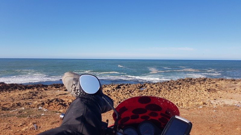 Meeresrauschen bevor ich in meiner neuen Unterkunft mit anderen Motorradfahrern