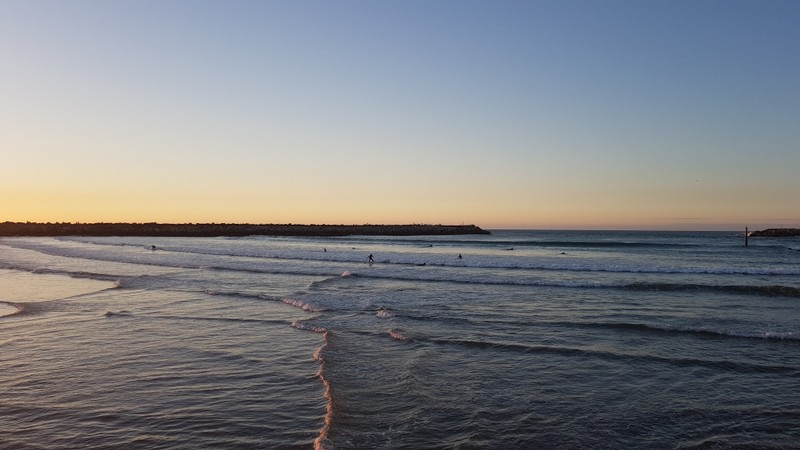 Mole, am Strand und am Hafen entlang. Die einen nutzten noch die letzten Wellen