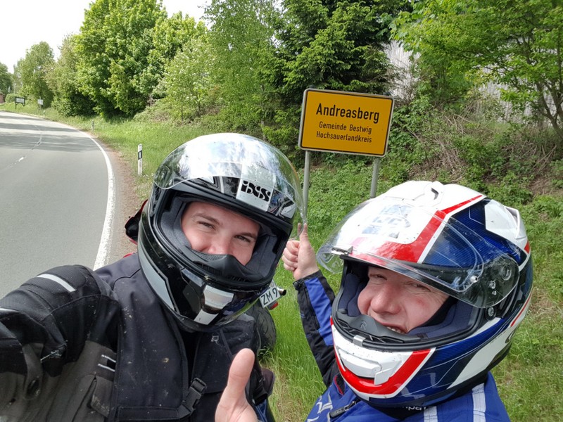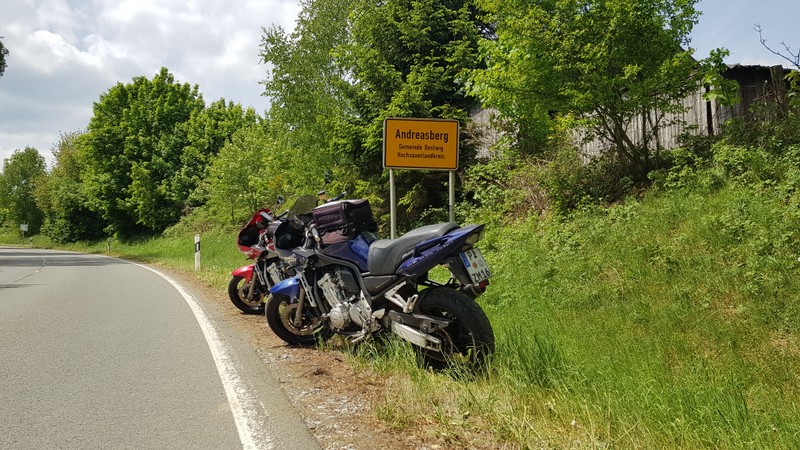 Der zweite Tag führte uns, wie sollte es auch anders sein nach Andreasberg. Und wenn zwei Andreas schon unterwegs waren musste dort natürlich mal für ein Foto angehalten werden. Natürlich durften auch der Klassiker wie eine Fahrt auf einer uns noch unbekannten Sommerrodelbahn nicht fehlen, bevor wir am Edersee entlang zurück in unser familiär geführtes Hotel mit Bikerhalbpansion zurück gefahren sind.