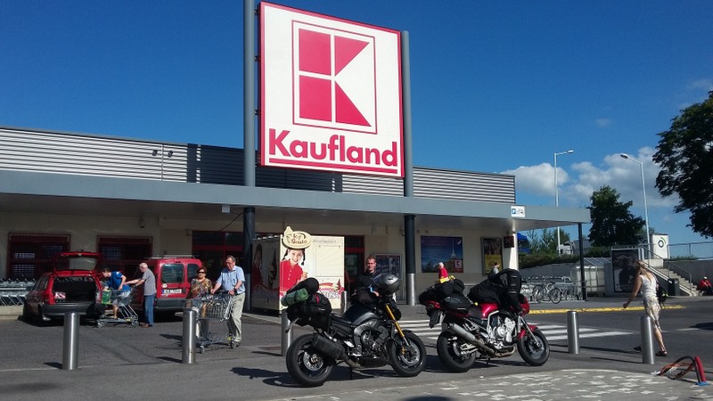 Motorradfrühstück bei Kaufland und starteten gestärkt in Richtung