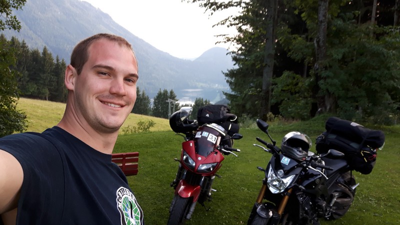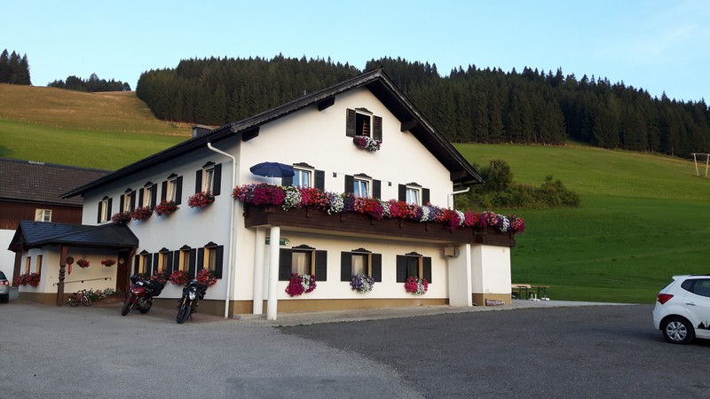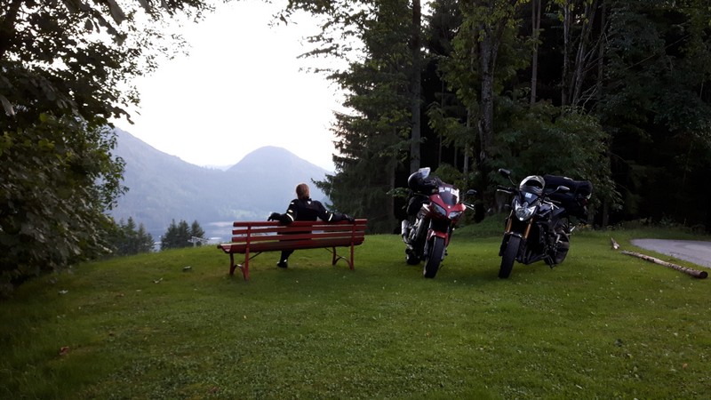 Am Dienstagmorgen geweckt von LKW`s und Rettungswagen übernahm Maike die Tageszielplanung. Erster Stopp, Baumwipfelpfad am Stausee „Lipno“ kurz vor der Österreichischen Grenze. Es war schon ein wenig ungewohnt ohne Skier in einen Sessellift zu steigen, aber was sollte den schon passieren in dicker Motorradhose. Von dort aus ging es direkt über die Grenze und es bot sich ab der ersten Sekunde eine wundervolle Landschaft. Ob wir nun geflasht waren von den Straßen oder der Landschaft kann Maike bis jetzt immer noch nicht sagen, da die Eindrücke bei unserer Fahrt vorbei an Linz und entlang der Ybbs nach Lunz am See immer wieder aufgefrischt wurden. „Doch wo wollen wir nun Übernachten?“ Camping entfernt vom See und für eine Nacht viel bei der Entscheidung gleich hinten runter. Erstes Hotel: Belegt. Pension an der Straße: Kein Lebenszeichen. Mittlerweile läuft uns das Wasser die Beine herunter, kaum Wind, knallender Sonnenschein und noch kein Fuß in den See gestreckt. Also das Hotel an der Ecke: Belegt. Doch die gute Dame war sehr Hilfsbereit und telefonierte hier und da und Zack: „Oben am Bauernhof die haben ein Zimmer frei. Seestraße entlang und dann links Maisszinken hoch.“