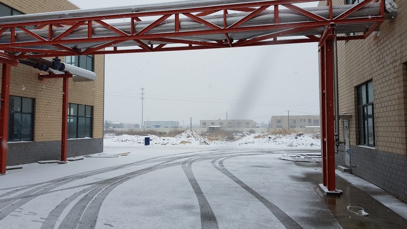 Kulinarisch habe ich auch wieder den Weg zu einem Muslimen gefunden um Lamian (von Hand gezogene Nudeln) in einer Rinderbrühe zu essen. Nicht nur lecker sondern auch schön warm. Ich liebe diese Nudeln seit meiner Montage in Kunshan und kann jedem nur raten in China diese Nudeln zu probieren. Natürlich durfte auch der typische chinesische Frühstückscrêpe „Jianbing“ nicht fehlen und sogar der Kunde versorgte uns sehr herzlich mit Keksen und Obst für zwischendurch. Doch leider entsprach die Hallentemperatur nie mehr über 2 Grad am Vormittag und so mussten wir die Arbeit nach 8,5 Arbeitstagen einstellen, da die Kabel zu starr zum verlegen sind.