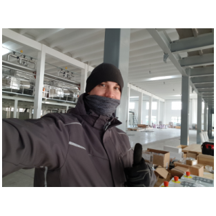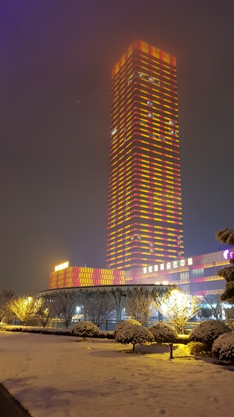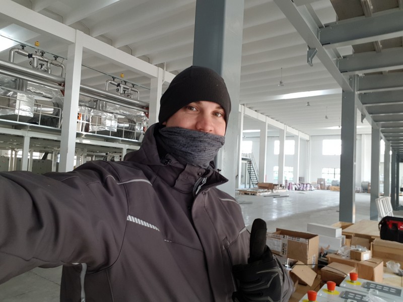 Leider lagen nun die Temperaturen in der Nacht im Minusbereich und Tagsüber gerade eben über 0 °C. Selbstverständlich nicht nur draußen sondern auch in der Halle, welche über keinerlei Heizung außer zweier Miniheizgebläse für unser Büro verfügte. Ich war froh mir noch dicke Arbeitskleidung organisiert zu haben, da man nun Mal die Maschine nicht im Büro aufbaut. Genau wie die Halle verfügten aber auch in Hai'an diverse Restaurants über keine vernünftige Heizung und so war es üblich auch in dicker Jacke mal Abend zu essen oder im Hotel zu Frühstücken.
