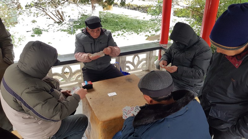 Passend zu dem Wetter rieselte auch drei Tage lang Schnee vom Himmel, wodurch sich die Straßen zu einer Eispiste verwandelten und die Straßenfeger anfingen die Straßen per Hand mit Salz zu streuen und Bäume von Schnee zu befreien. Ja ihr habt richtig gehört. Mit langen Bambusstöcken wurde der Schnee von den Bäumen geschlagen. Klingt komisch, ist aber so!