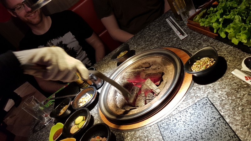Mit Mac und Ada hatte ich natürlich die beiden richtigen im Gepäck und der „HotPot“ wurde in scharf und mild Kombination bestellt, dazu gab es dann verschiedene Sorten Fleisch, Gemüse und Soßen. Ich musste feststellen das selbst die scharfe Variation noch für mich essbar war. Ein gelungener Abend.
