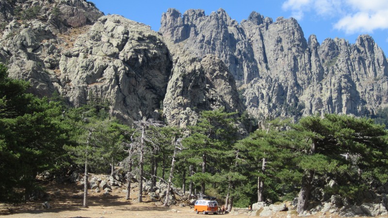 Als die Sonne über Sardinien unterging hatte das lange Warten ein Ende und wir fuhren auf die Fähre. In völliger Dunkelheit und stürmischer See ging es rüber nach Bonifacio und weiter zum „Campingplatz California“. Die Fahrt war schon etwas ungewohnt auf völlig dunklen Landstraße und ein gutes Maß an Seitenwind. Doch es gibt nichts blöderes als um 22:15 Uhr noch einen Zeltplatz auszusuchen ohne wirklich wahrzunehmen wie der Platz aussieht oder wo man sich überhaupt befindet. „Sucht euch ein Plätzchen aus!“, waren seine Worte. Letztendlich stand das Zelt vor Mitternacht und wir waren einfach nur Froh irgendwo auf Korsika angekommen zu sein.