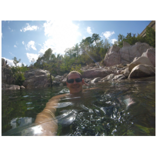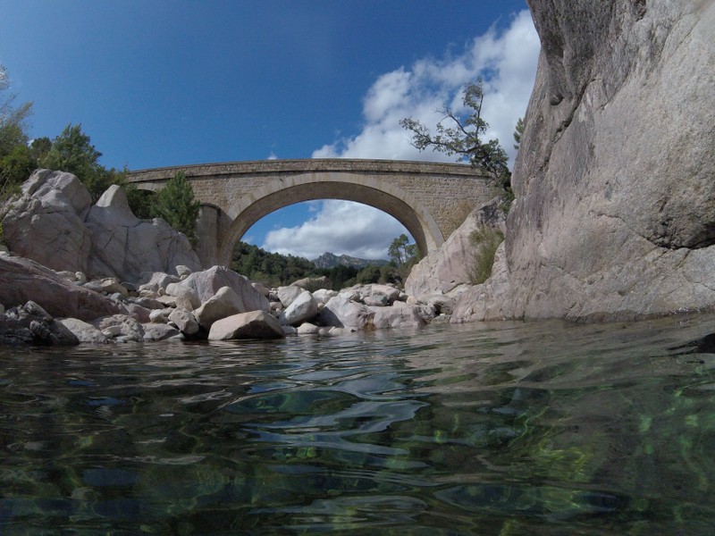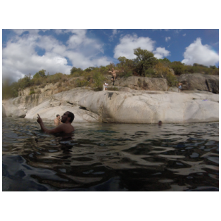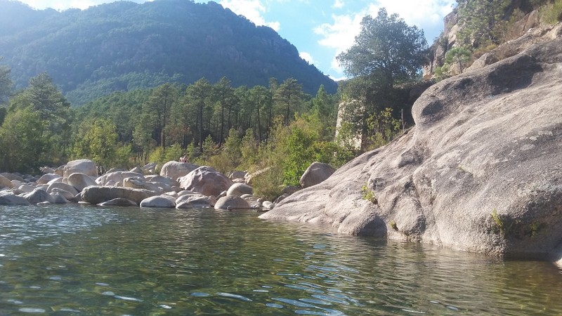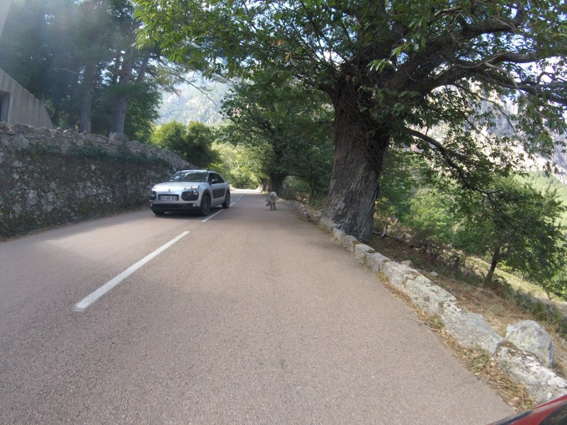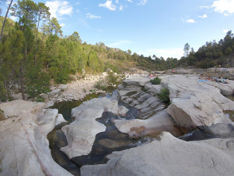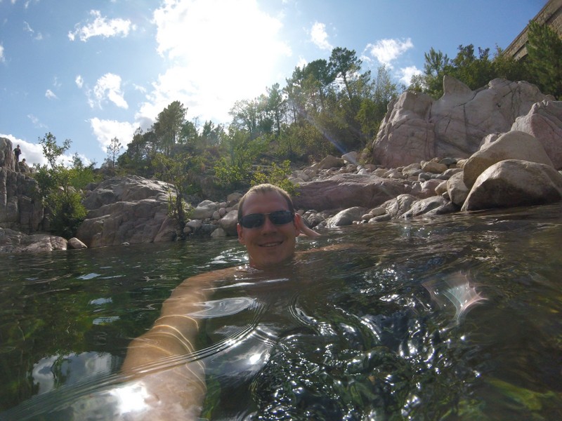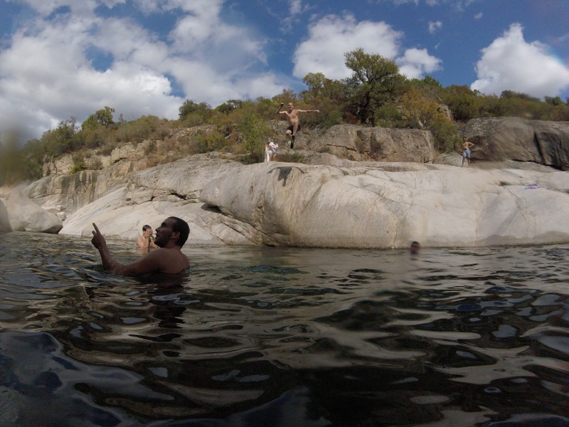 Am Mittag, ein paar Kilometer entfernt erreichten wir herrliche Süßwasserbadestellen. Stunden lang konnte man den Fluss hoch laufen und erreichte immer wieder neue Becken, manche wärmer, manche kälter aber auch mal tief genug um von einem knapp 3 Meter hohen Felsen in das kühle Nass zu springen. Doch auch eine Tagestour über den nahegelegenen Pass „Bocca di Bavedda“ durfte nicht fehlen. Unterwegs erreichten wir viele schöne Aussichtspunkte mit Blick über das Meer oder auf die malerischen Gebirgswände. Eine Aussicht wie man es nur aus Filmen kennt gekürt mit Bergziegen auf der Straße und am Straßenrand. Eine fahrt mitten durch die vollkommene Natur, durch kleine Dörfer und vorbei am fast ausgetrockneten Speichersee.