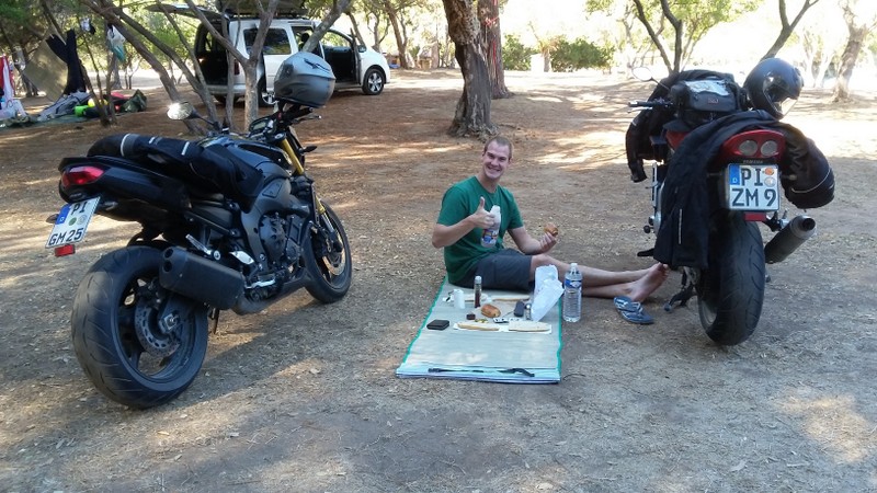 Relativ ausgeschlafen hieß es erst einmal Duschen, Platz erkunden, Frühstücken und Tagesplanung.