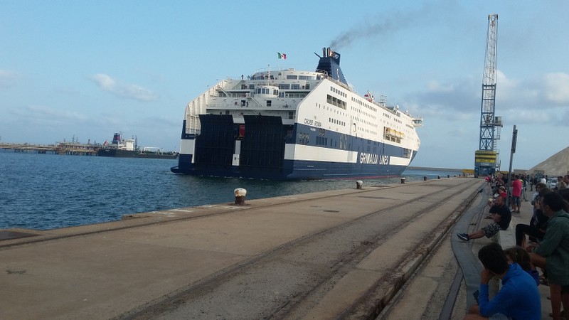 Heute morgen war frühes Aufstehen angesagt. Im Hafen von Porto Torres warteten wir im gemütlichen Sonnenaufgang auf unsere Fähre. Ja wir warteten und fuhren mit über einer Stunde Verspätung los. Schlaf nachholen, Musik hören und die Sonne am Heck des Schiffes genießen bevor wir heute voraussichtlich um 21:15 den Hafen von Barcelona erreichen.